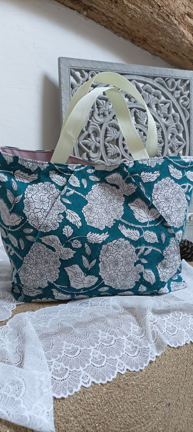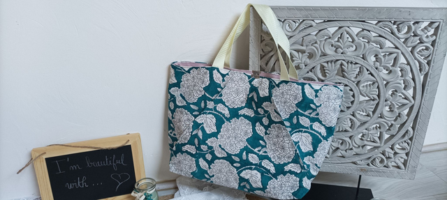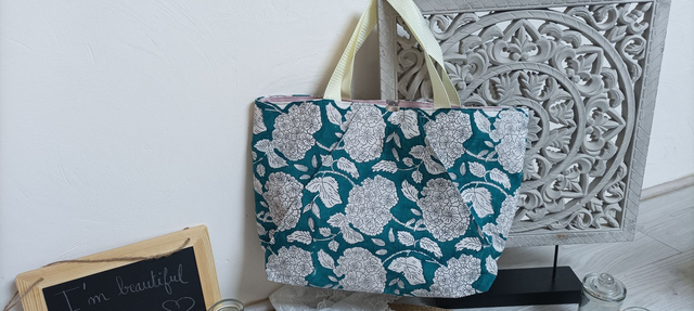 Sac fait main en tissu Indien. C'est un tissu très léger qui permet d'avoir un sac très léger en main.